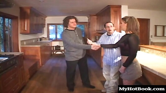 Glorious Milf houseowner molten 3 way hump with bachelor fellows! with clear audio
