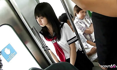 Busty, Japanese brunette is getting molested in a public buss, but she luvs it a lot