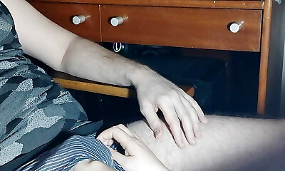 I fucked Alena's tight beaver without taking off my panties and finished inwards