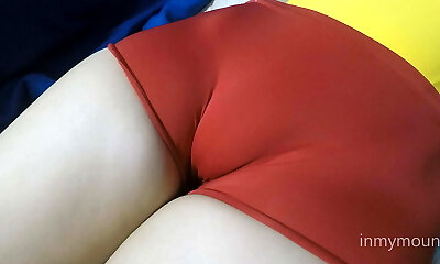 Panty fetish. Close-up in my puffy snatch cameltoe in a pink undies before going to bed.