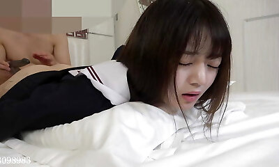 Japanese schoolgirl damsel gets her tight smooth-shaven Asian pussy fucked hard