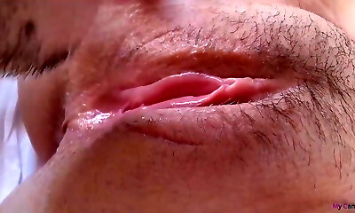 Big pussy is oozing and cascading cum