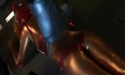 Shagging her with a sex machine and gimps go bananas