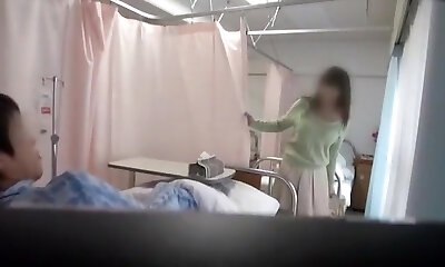Jap nurse handles patient's tiny dick to blowjob at medical center
